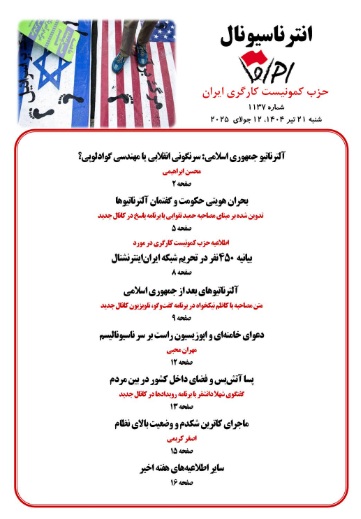 انترناسیونال نشریه سیاسی حزب کمونیست کارگری است و هر هفته یک بار منتشر میشود. محور تبلیغات و بحثها و تحلیلهای این نشریه افشای ارتجاع اسلامی حاکم و دفاع از سرنگونی و انقلاب کارگری و یک جامعه انسانی و سوسیالیستی است. اعتراضات و اعتصابات کارگران و معلمان و بازنشستگان و زنان و دیگر بخشهای مختلف مردم نیز منظما در این نشریه بازتاب می یابد و مورد تجزیه و تحلیل و دفاع قرار میگیرد.